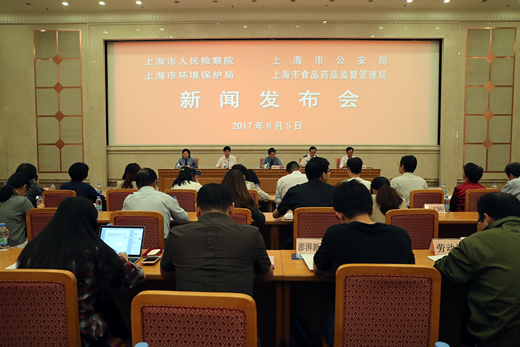 、上海市公安局、上海市环境保护局、上海市食品药品监督管理局召开联合新闻发布会,通报打击破坏环境资源和危害食品药品安全违法犯罪工作情况,凝聚社会共识,共同参与环境、食品药品领域社会治理创新,严密生态环境、食品药品安全监管“防护网”,共同保护上海的绿水青山、全力保障广大市民“舌尖上的安全”。