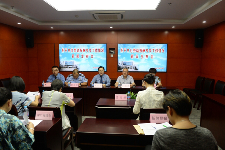 9月27日,徐汇区检察院联合区公安分局、区人社局召开“拒不支付劳动报酬专项治理工作情况”新闻发布会,徐汇区检察院副检察长杨永勤、区人社局副局长丁星辉以及检察三部、区公安分局、区人社局劳动监察大队的相关负责同志出席。发布会上,通报了《拒不支付劳动报酬专项综合治理工作方案和操作细则》会签一周年以来,三家单位相互支持、相互配合取得的工作成效及办理的典型案例。