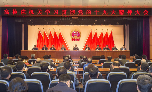 10月26日上午,最高人民检察院召开全体党员干部大会,传达学习党的十九大精神。最高人民检察院党组书记、检察长曹建明主持会议并讲话。 本报记者程丁摄