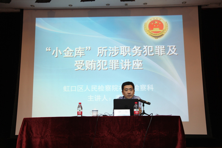 讲座中,社区检察科检察官介绍了虹口区检察院各项工作职能,通过PPT演示阐述了“小金库”的定义及危害性,利用生动案例对“小金库”所涉及的职务犯罪罪名进行详细解析。