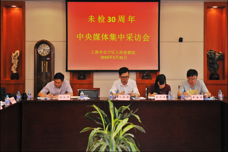 5月31日下午,高检院新闻办组织人民日报、新华社、中央电视台等10余家中央媒体赴长宁区检察院就“未检30周年”进行集中采访。采访会上,长宁区检察院副检察长叶国平以“上海长宁未成年人检察工作30年回顾”为主题介绍了该院未检工作,记者们还实地参观了上海未成年人检察工作展示馆。