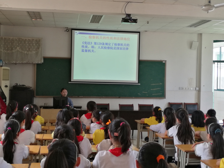 近日,宝山区检察院干警至宝山区杨东小学开展“法治进校园”活动,检察官以“远离违法犯罪筑牢青春防线”为主题,从检察机关的基本职能、未成年人犯罪原因、犯罪预防和自我保护等几个方面,为该校五年级全体女生上了一堂有意义的法治教育课。