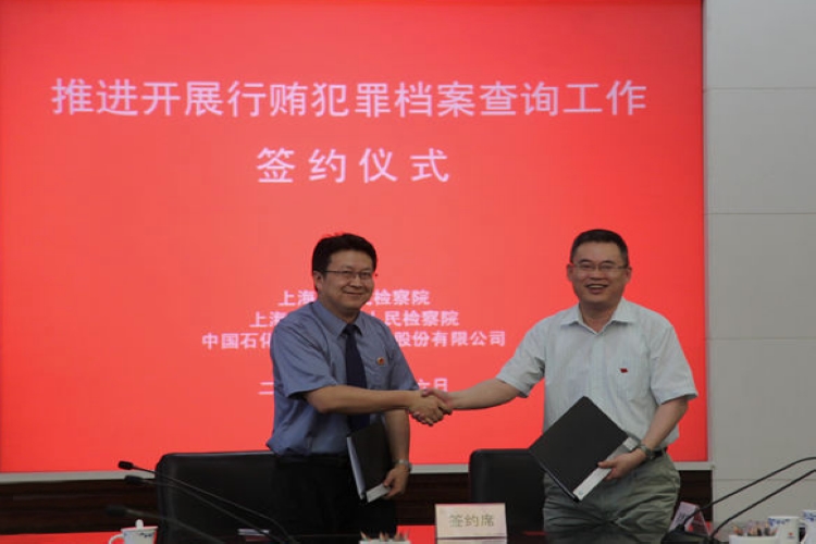 日前,金山区检察院与中国石化上海石油化工股份有限公司举行推进行贿犯罪档案查询工作意见签约仪式。在活动现场,该院副检察长吴引其向上石化主要部门负责人通报了近年来检察机关开展职务预防工作的情况。随后,检察长陶建平与上石化党委书记高金平共同签署了工作意见。