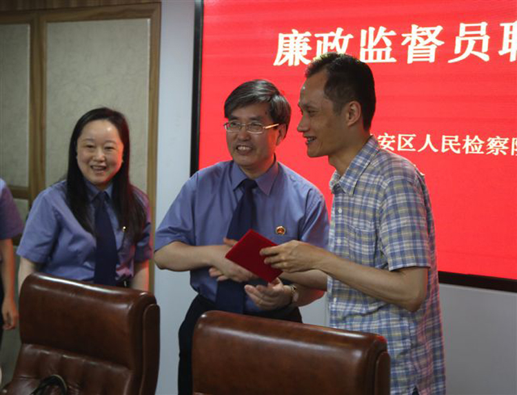 为切实加强检察机关党风廉政建设,广泛接受社会各界监督,完善监督机制,突出监督实效。近日,静安区检察院召开廉政监督员聘任会,聘任了包括区人大代表、政协委员、企事业单位的代表在内的16位新一届廉政监督员。