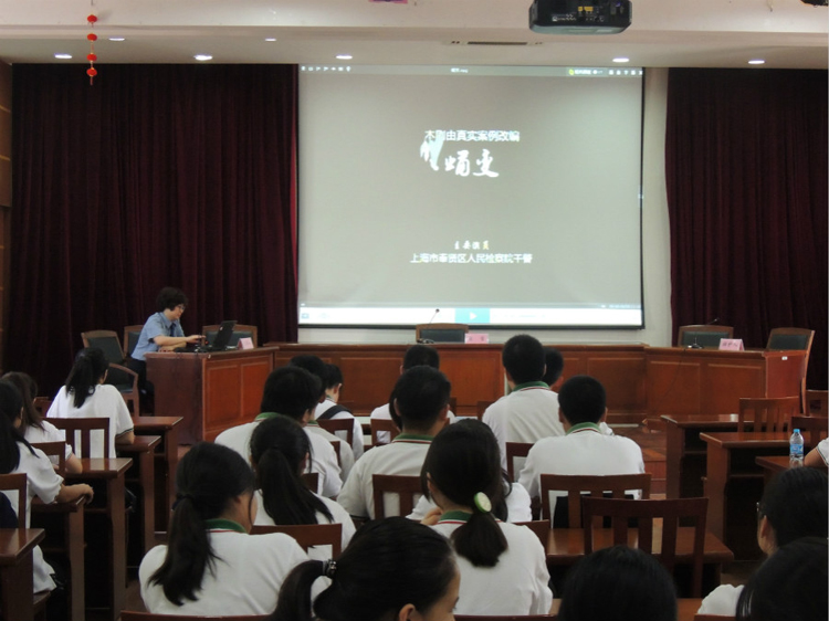 随后,同学们来到奉贤检察院,观看了由检察干警自导自演的情景剧《傻乎乎的兄弟》,并通过“模拟法庭”的形式还原法庭审判。紧接着检察官为同学们展播了微电影《蛹变》,该电影针对性的对青春期的未成年人开展性犯罪法制教育,提高未成年人自我保护和自我约束能力。