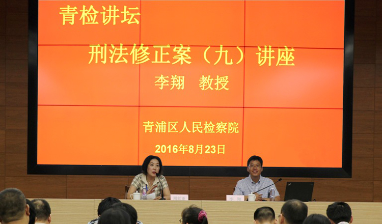 为落实检察官研修制度,进一步提升干警的法律政策水平和检察业务能力,8月23日下午青浦区检察院举办了第一期“青检讲坛”专题讲座,特邀华东政法大学李翔教授,以“刑法修正案(九)的理解和适用”为题,对全院干警进行了专业授课,进一步夯实了检察官法律基础的理论知识。