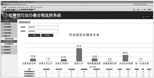 上海市奉贤区检察院司法办案全程监控考核系统2015年11月26日至2016年8月30日司法规范化分析截图。