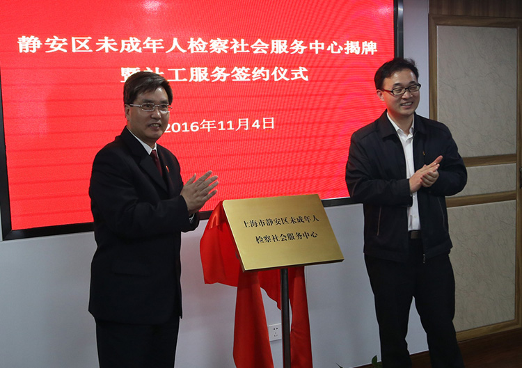 近日,静安区未成年人检察社会服务中心正式揭牌。区检察院与区社工站签订《关于静安区青少年社工参与未成年人刑事案件诉讼工作的协议》。区检察院检察长杨恒进,团区委书记马士威出席。团区委服务和权益保护部、区社工站相关负责人,区检察院未检科全体干警及专职社工参加。