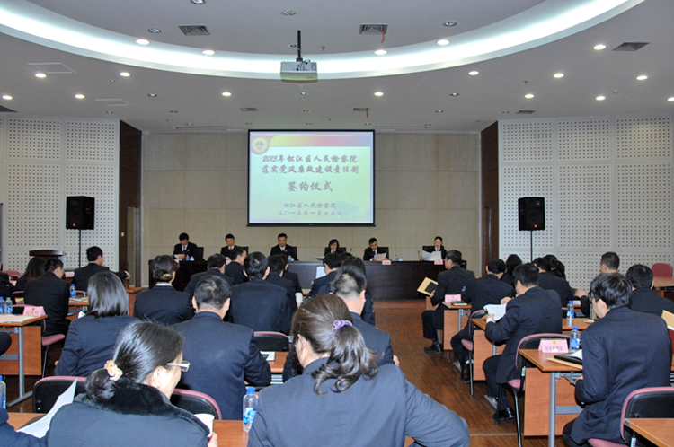 日前,松江区检察院举行2015年度党风廉政建设责任制签约仪式,该院检察长与各位分管检察长、分管检察长与部门负责人分别签订了党风廉政建设责任书。会后,部门负责人与本部门所属人员签订责任书,并报纪检组、监察处备案。