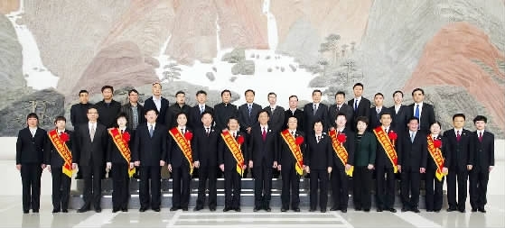 2月13日,最高人民检察院检察长曹建明与获得首届“守望正义——群众最喜爱的检察官”称号的10 名先进个人合影留念。程丁 摄