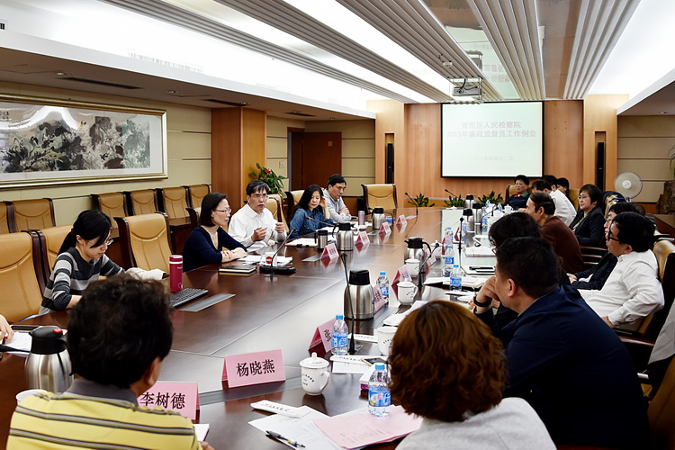 近日,普陀区检察院组织召开了2015年度廉政监督员工作例会,区内的12名廉政监督员出席。该院检察长杨恒进、纪检组长肖荣勤等参加例会。