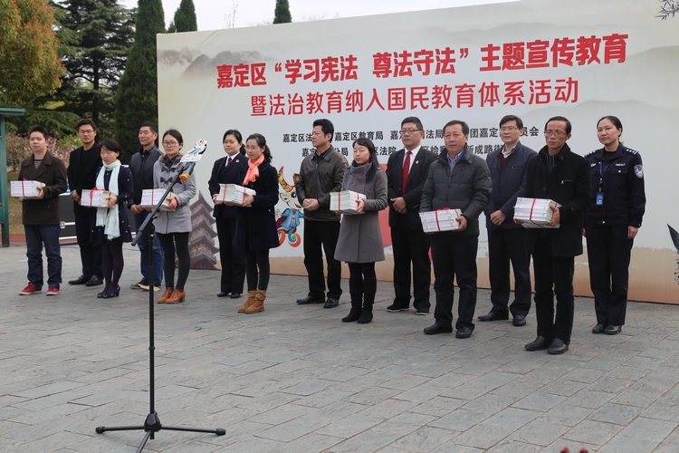 近日,嘉定区法宣办、区教育局、区司法局、团区委等单位联合嘉定区检察院,在嘉定区宪法广场联合举办“学习宪法尊法守法”主题宣传教育暨法治教育纳入国民教育体系活动,旨在推动把法治教育纳入国民教育序列,编入中小学教学大纲,在中小学设立法治知识课程,保证在校学生都能得到基本法治教育。