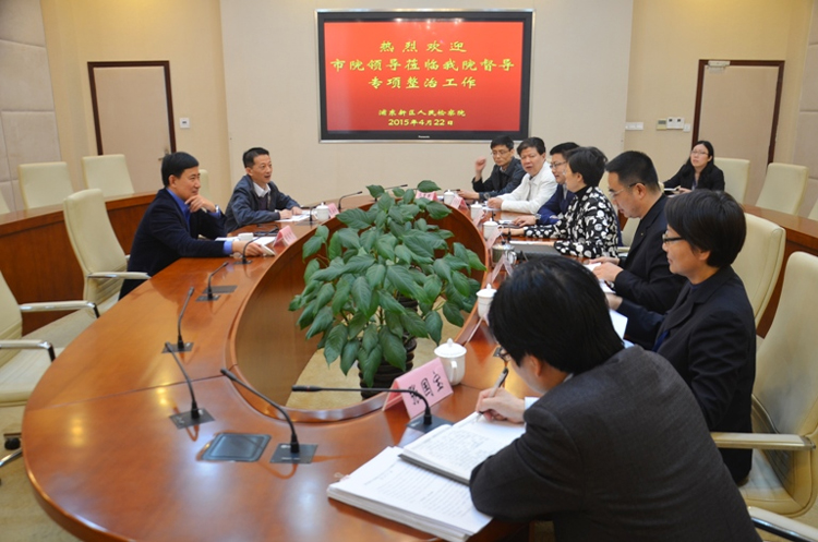 近日,福利吧 副检察长陈辐宽一行到浦东新区检察院督导检查规范司法行为专项整治工作情况。浦东新区院检察长陈思群及专项整治工作领导小组办公室成员等参加会议。