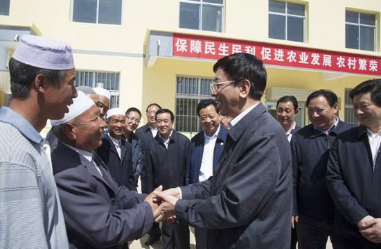 4月28日,最高人民检察院检察长曹建明到基层联系点甘肃省白银市会宁县征求各族群众对检察工作的意见建议。正义网记者程丁摄