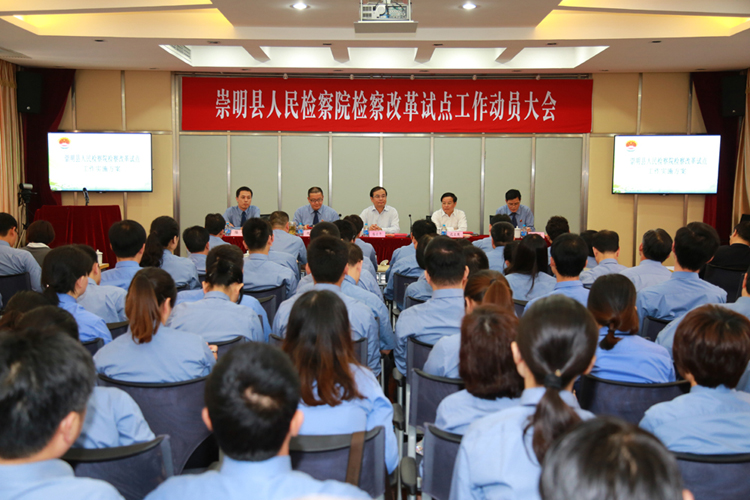 日前,崇明县检察院召开检察改革试点工作动员大会。崇明县委常委、政法委书记梅云平,县政协副主席沈卫国出席会议,该院全体干警及老干部代表、特邀监督员代表参加会议。会上公布了《崇明县人民检察院检察改革试点工作实施方案》,部署了该院改革试点工作的目标要求、主要任务、基本原则和工作安排。