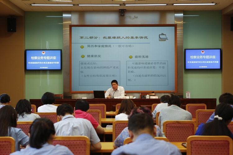 讲座中,谢闻波处长结合多年的办案经验,从《审查逮捕意见书》制作的总体要求、准备工作、组织结构等方面,向该院干警详细讲述了《审查逮捕意见书》制作的重点、难点及注意事项,并结合《意见书》的制作要求,指导干警把握审查逮捕案件的办理要点及逮捕条件。