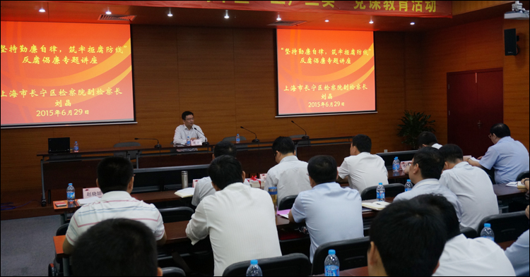 为进一步加强代表委员联络工作,提供职务犯罪预防和法律知识方面服务的建议,七一前夕,长宁区检察院副检察长刘晶赴上海置信电气股份有限公司作《坚持勤廉自律筑牢拒腐防线》的专题授课,该公司中层以上干部及重要岗位人员等70余人参加。