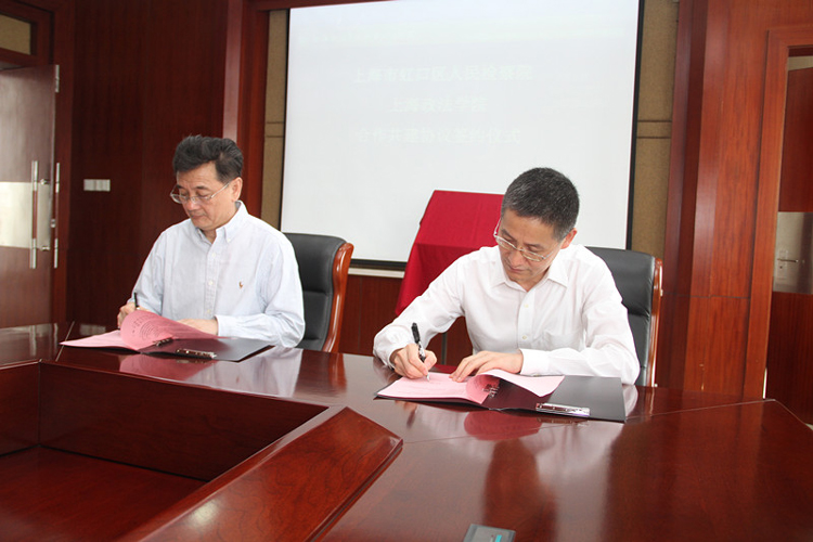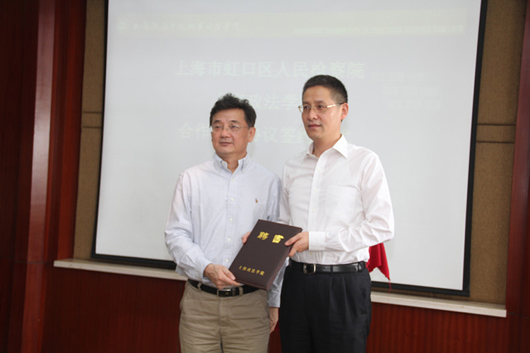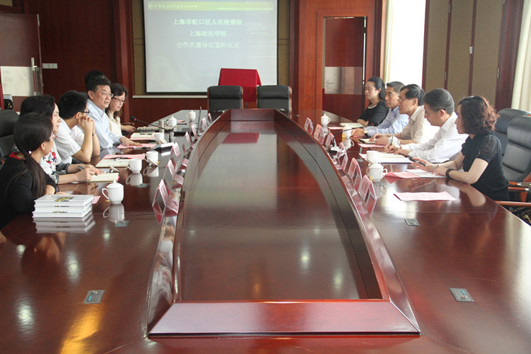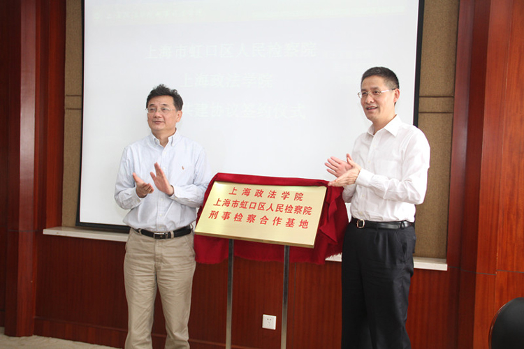 会上,金建庆检察长代表虹口区院、杨俊一书记代表上海政法学院签署了合作共建协议,并为“刑事检察合作基地”揭牌,上海政法学院聘请金建庆检察长为客座教授。上海政法学院姚建龙教授、王晓宇处长以及虹口区院田欢忠副检察长、检委会专职委员张建作交流发言。