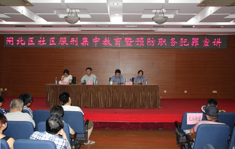 近日,受闸北区司法局邀请,闸北区检察院社区检察科检察官赴宝山路街道文化中心,对宝山街道、北站街道、芷江西路街道、天目西路街道司法所管理的社区矫正对象进行集中教育,并就职务犯罪预防进行宣讲。