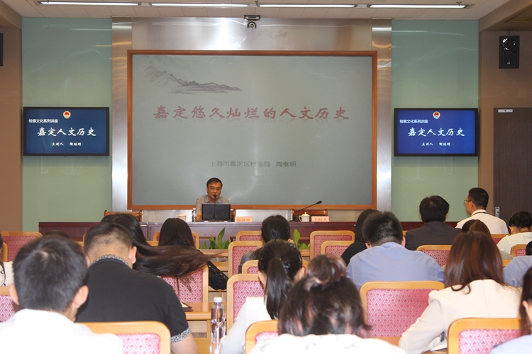 “嘉定有1500多年的人文历史,建城也近800年。‘嘉定’二字代表着美好安定的意思。古语有云,天下文章萃于嘉定。因此我们应当注重文化的积累和传承”。为进一步提高检察干警人文素养,强化检察队伍人才培养,使检察工作更“接地气”、“贴民心”,日前,嘉定区检察院特邀嘉定地方志专家陶继明以“嘉定悠久灿烂的人文历史”为主题举办文化讲座,为广大青年干警讲述嘉定的人文历史。