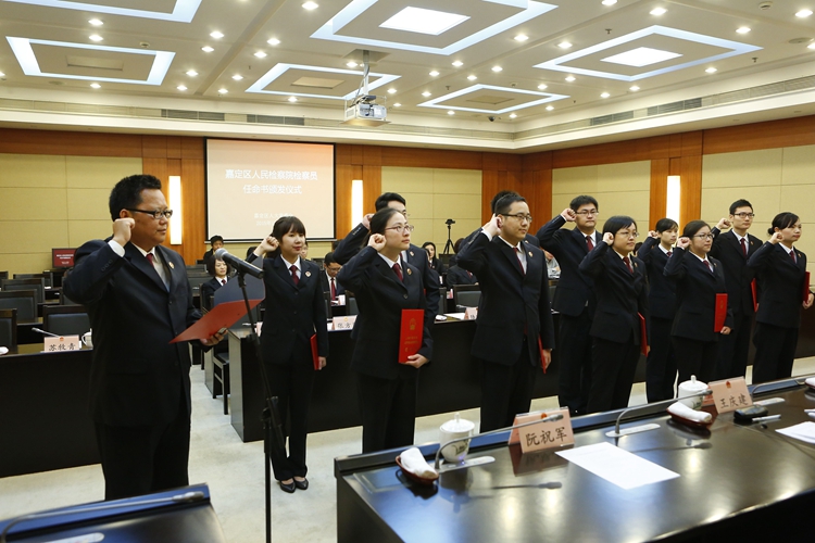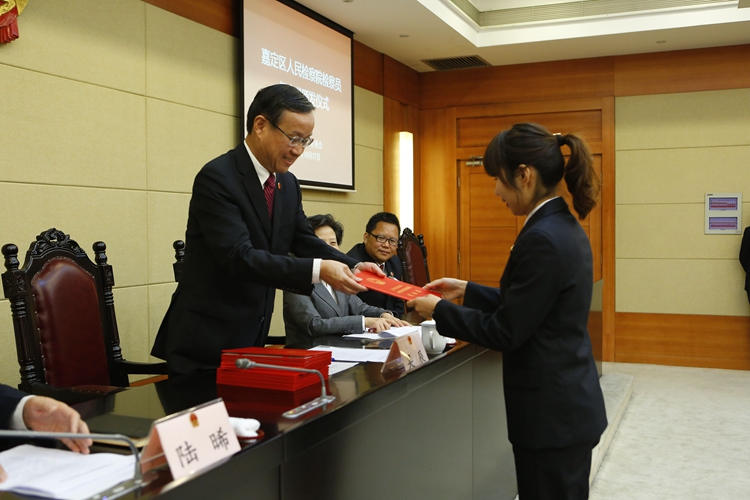 10月27日,嘉定区人大常委会向嘉定区检察院首批遴选入额的11名检察官颁发检察员任命书,此次任命仪式后,该院业务部门的检察员配备数量将较司法改革前增加42%,进一步推动了办案质量和效率的提高。