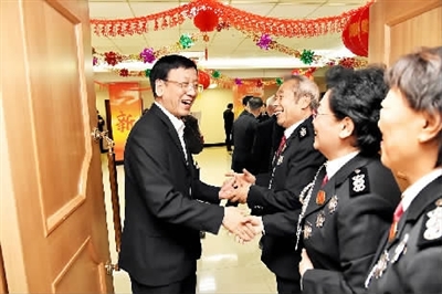 离退休老干部亲切交谈,并向他们致以新春的祝福。本报记者程丁摄