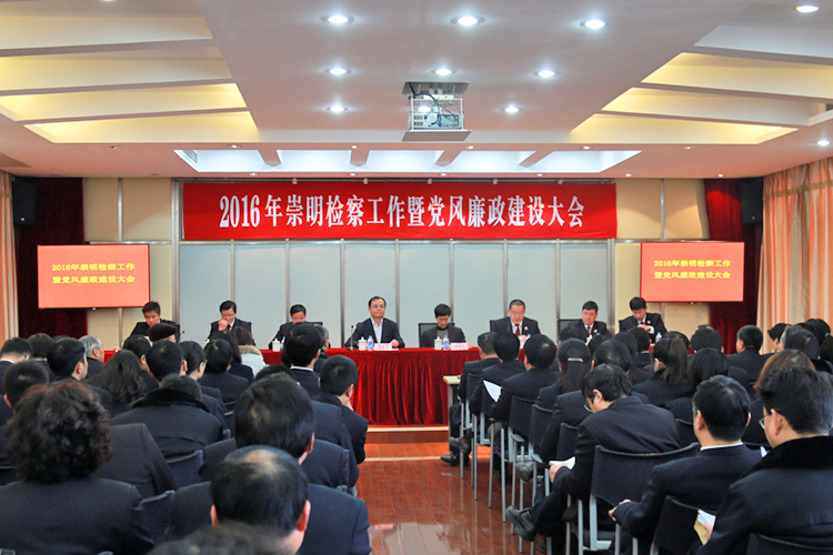 日前,崇明县检察院召开2016年崇明检察工作暨党风廉政建设大会。崇明县委常委、政法委书记梅云平,县人大常委会副主任邢建良,县政协副主席沈卫国等领导,以及崇明县院特邀监督员代表、离退休老干部代表出席会议。