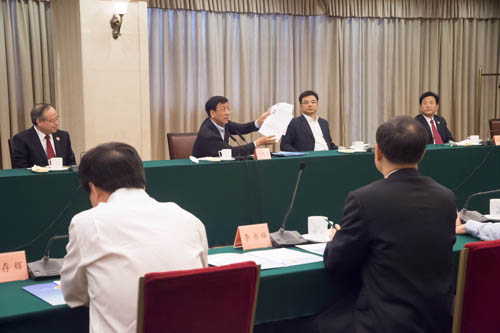 全国人大代表、杭州娃哈哈集团有限公司董事长、总经理宗庆后,全国政协委员、浙江吉利控股集团董事长、沃尔沃轿车公司董事长李书福,全国政协委员、浙江省工商联主席、正泰控股集团有限公司董事长、总裁南存辉……5月4日上午,一位位让人耳熟能详的浙商大咖,齐聚浙江省人民大会堂二楼会议室。最高人民检察院党组书记、检察长曹建明刚刚参加完“全国模范检察官”王盛表彰会,就马不停蹄地召开部分在浙全国人大代表、政协委员座谈会,就检察机关如何服务新常态下经济社会发展向9名代表委员问需问计。