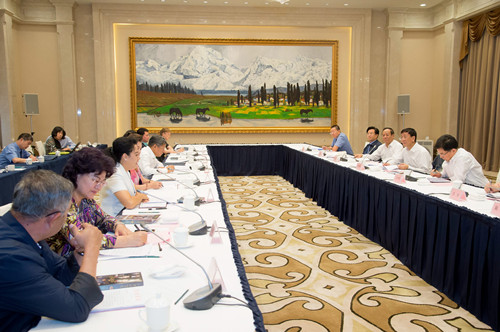 9月5日上午,最高人民检察院党组书记、检察长曹建明在乌鲁木齐与部分在疆全国人大代表、全国政协委员座谈,听取大家对检察工作的意见建议。本报记者程丁摄