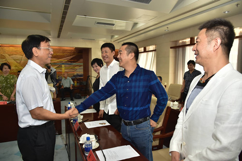 座谈会召开前,最高人民检察院党组书记、检察长曹建明与电视剧《人民检察官》主创人员代表亲切交谈。本报记者程丁摄