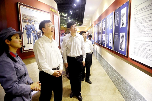 江西省委常委、赣州市委书记李炳军共同为“中华苏维埃共和国检察史陈列馆”重新布展开馆揭幕,江西省检察院党组书记、检察长刘铁流主持揭幕仪式,并一同参观展览。