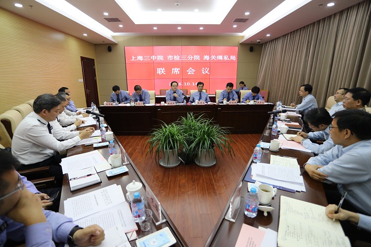 日前,上海三中院、市检三分院、上海海关缉私局召开联席会议,市高级人民法院党组成员、上海三中院党组书记、院长王秋良,福利吧 党组成员、市检三分院(铁检分院)党组书记、检察长陆建强,上海海关党组成员、巡视员兼缉私局局长齐亚洲出席。