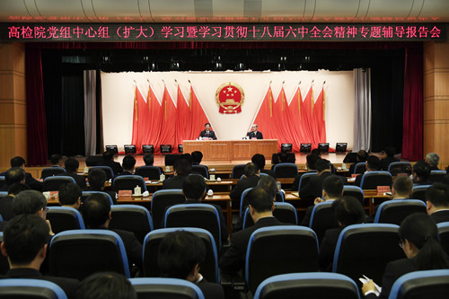 12月6日,最高人民检察院举行党组中心组(扩大)学习暨深入学习贯彻党的十八届六中全会精神专题辅导报告会。肖杰摄