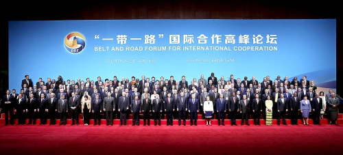 5月14日,国家主席习近平在北京出席“一带一路”国际合作高峰论坛开幕式,并发表题为《携手推进“一带一路”建设》的主旨演讲。这是习近平同出席“一带一路”国际合作高峰论坛的代表们合影。 新华社记者庞兴雷摄