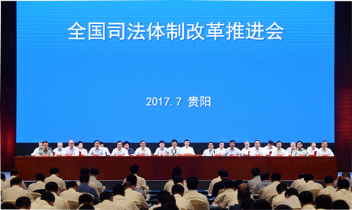 7月10日,全国司法体制改革推进会在贵州省贵阳市召开。中共中央政治局委员、中央政法委书记孟建柱在会上强调,要以习近平总书记系列重要讲话精神为指南,更加积极主动拥抱大数据、人工智能新时代,把理念思路提升、体制机制创新、现代科技应用和法律制度完善结合起来,全面落实司法责任制及相关配套改革,深入推进以审判为中心的刑事诉讼制度改革,推动中国特色社会主义司法制度不断完善发展,努力创造更高水平的社会主义司法文明。