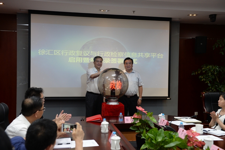 8月24日,上海市首家行政复议与行政检察信息共享平台启动暨备忘录签署仪式在徐汇区检察院召开,来自市、区检察院和区政府的领导,以及区法制办、区法院、区重点执法部门的相关负责人出席此次仪式。