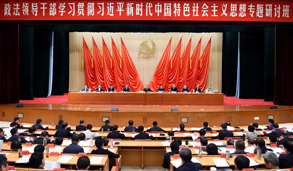 政法领导干部学习贯彻习近平新时代中国特色社会主义思想专题研讨班5月3日上午在中央党校开班。中共中央政治局委员、中央政法委书记郭声琨出席开班式并讲话。郝帆摄