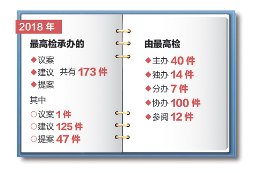承办的议案、建议和提案主要有三个方面的特点:一是聚焦司法改革,尤其是高度关注公益诉讼改革;二是关注检察监督权的行使和完善;三是关心民生和社会热点。