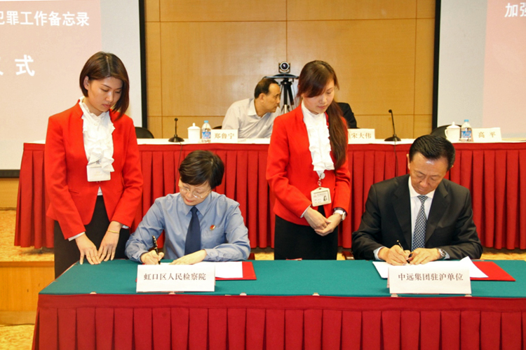 仪式上,虹口区检察院党组书记、检察长陈思群,中远集装箱运输有限公司党委书记高平代表双方签署备忘录。检察机关还向中远集团驻沪单位代表赠送了《以案释法——国企工作人员职务犯罪案例汇编》等预防书籍。