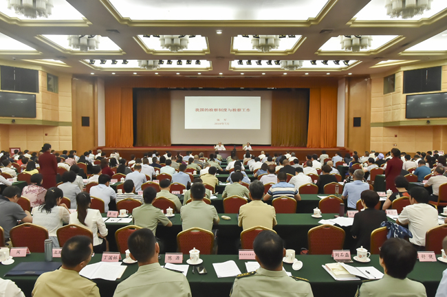 7月18日上午,在十三届全国人大第二期代表学习班上,最高人民检察院党组书记、检察长张军为参加学习的人大代表作专题报告。程丁摄