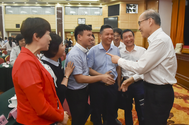 专题报告会结束后张军检察长与人大代表互动交流。程丁摄