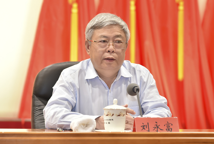 党组书记、检察长张军主持会议,邀请国务院扶贫办主任刘永富作专题辅导。程丁?摄