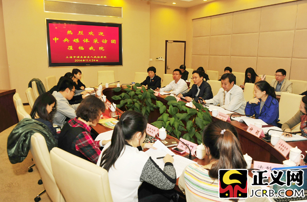 最高人民检察院“看得见的正义”中央新闻媒体采访团来到上海市浦东新区检察院展开座谈。闫昭/摄
