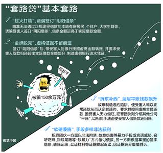 所谓“套路贷”,指的是以“迅速放款”为诱饵吸引借款人,哄骗其在空白借条及协议上签字,写下高于借款额几倍的数额,之后以语言威胁、非法拘禁等手段,对借款人及其家属强行收账,进而将债务“滚雪球”。通过层层“平账”和“再借款”,放贷人最终获取的钱款往往是借款人最初借款额的十几倍甚至几十倍。